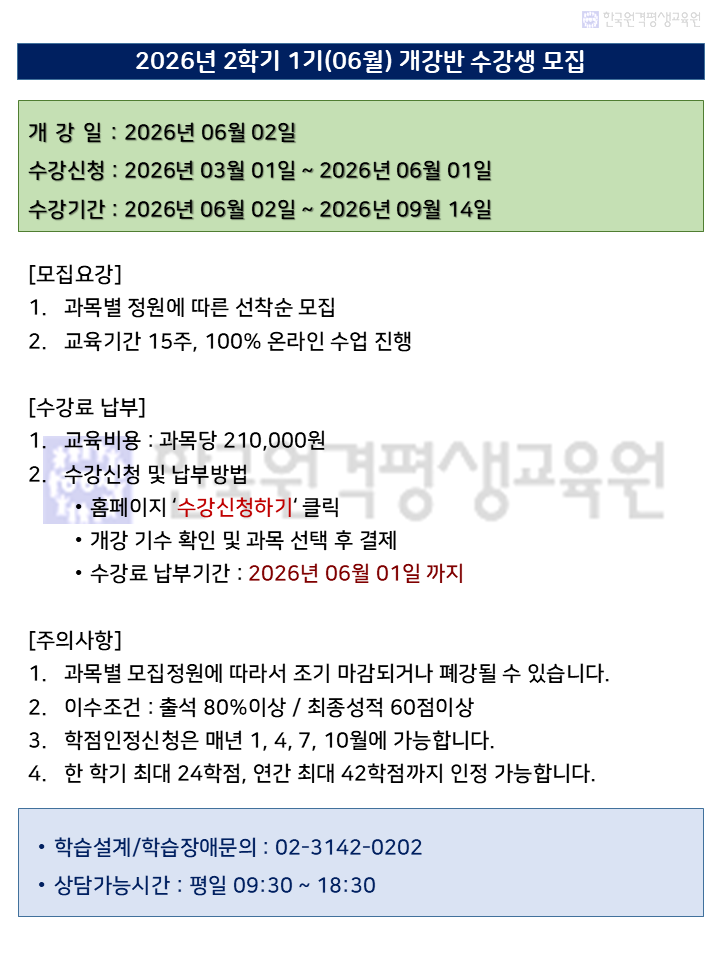 2026년 2학기 1기 수강생 모집안내 공지