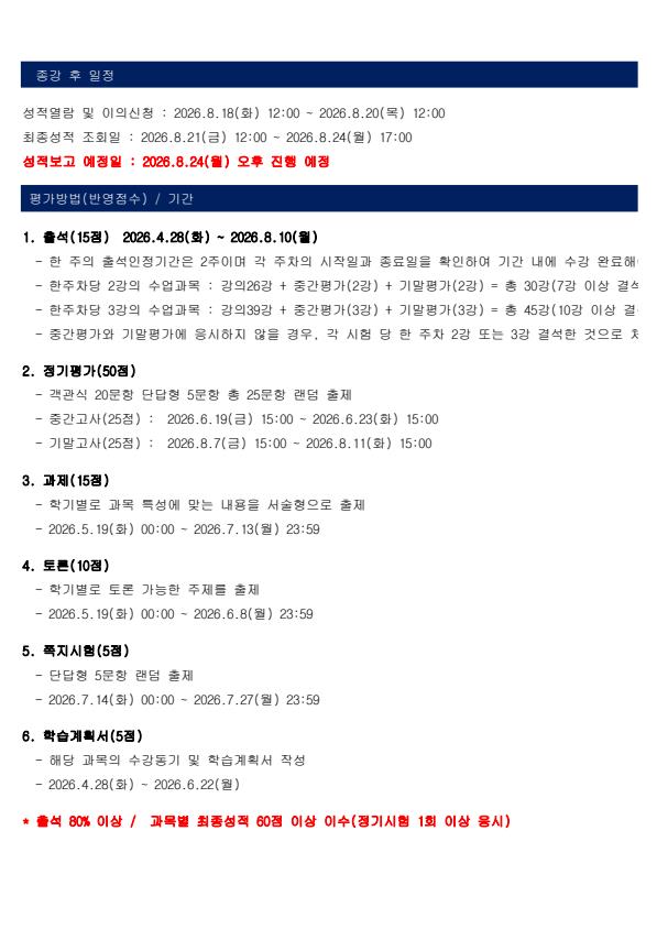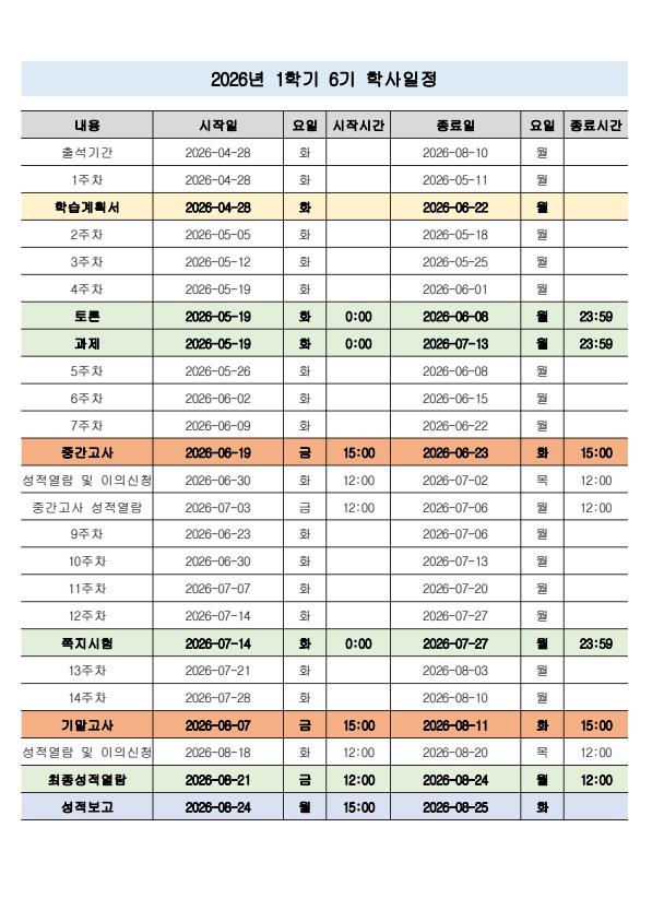 2026년 1학기 6기 (04월 28일 개강) 학사일정